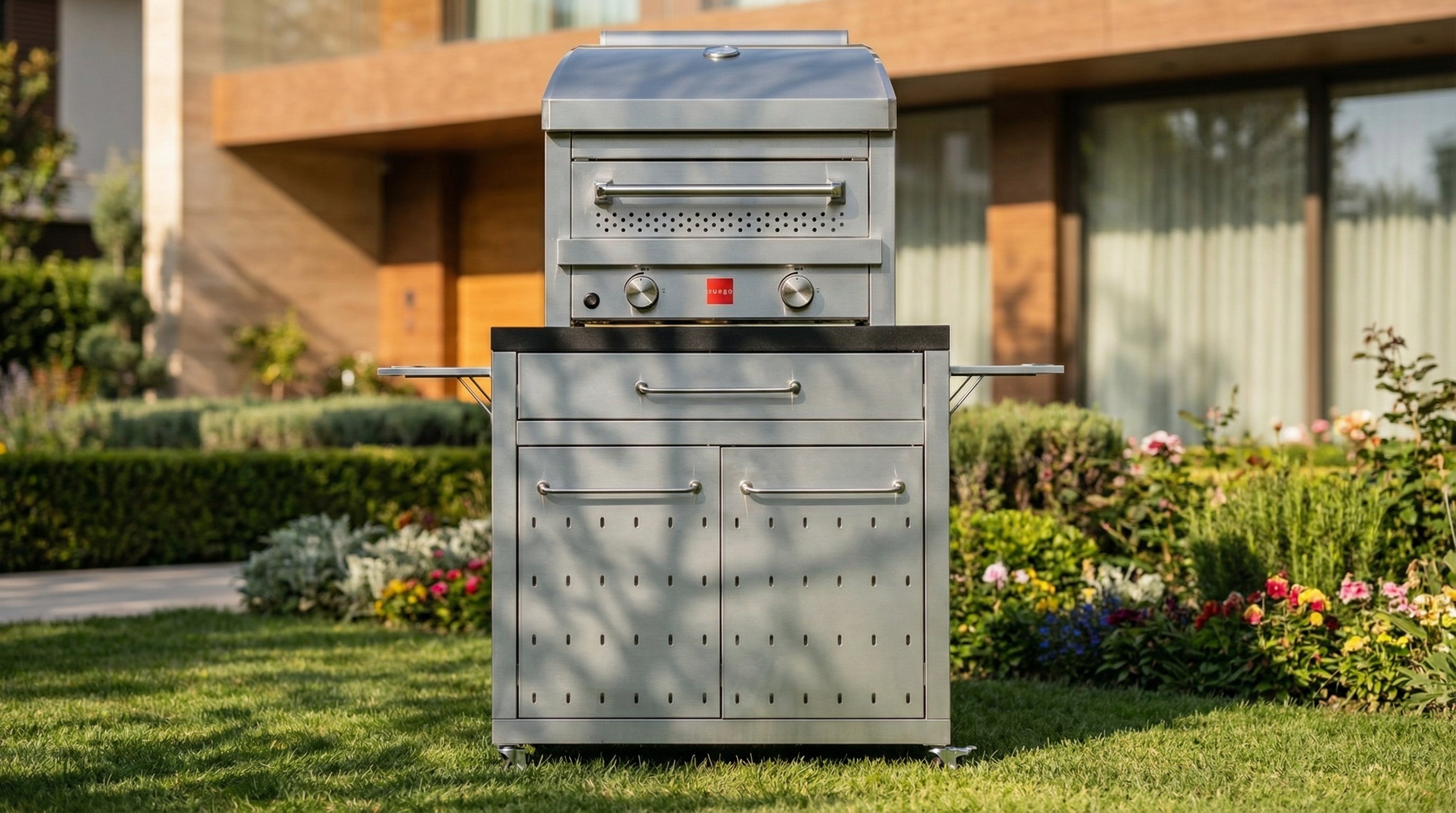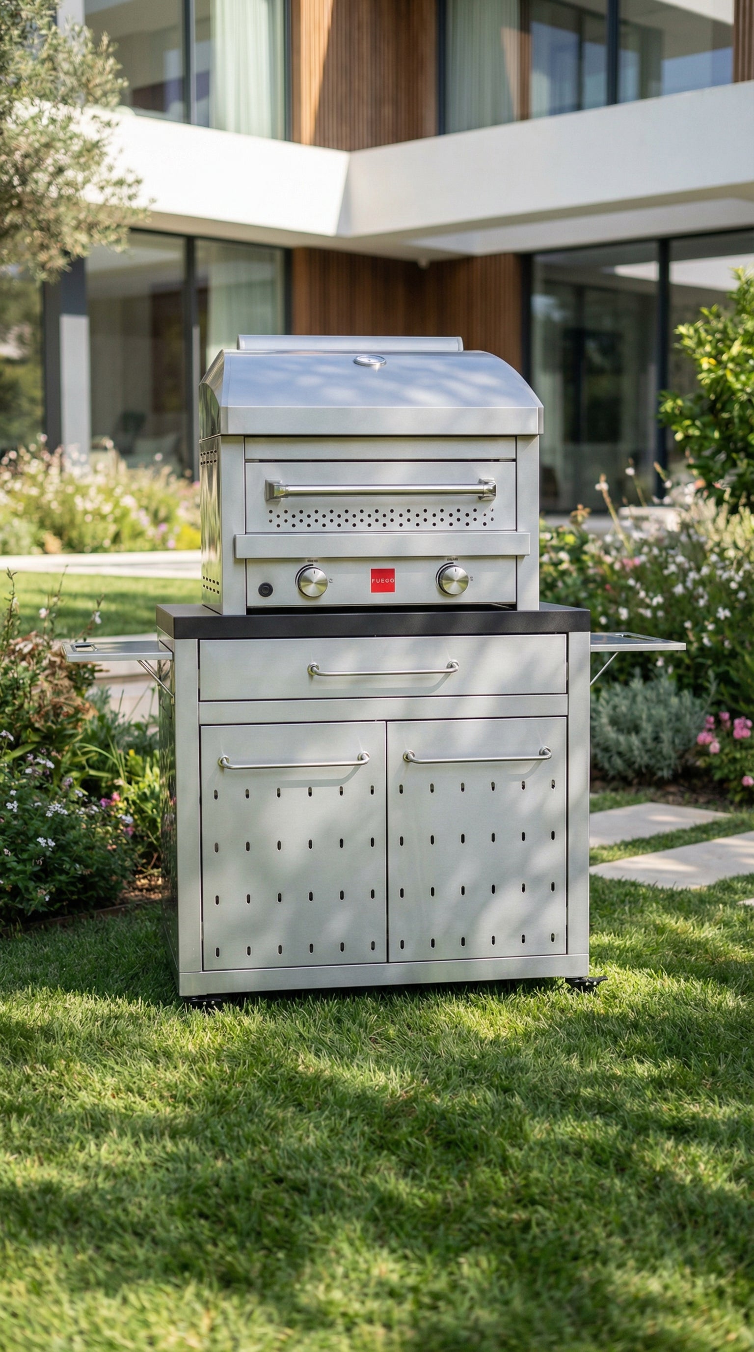 - Comes with wheels as stand alone pizza oven cart.